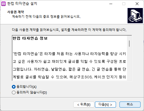 한컴 타자연습 구버전을 다운로드했다면, 이제 설치를 진행할 차례입니다.